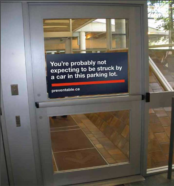 Employees are exposed to the Preventable message at work, and this message in turn is highlighted in the community through our other campaign elements (out-of-home, mixed media, social media, partnership events), further reinforcing those connections between attitudes and beliefs and behaviour.