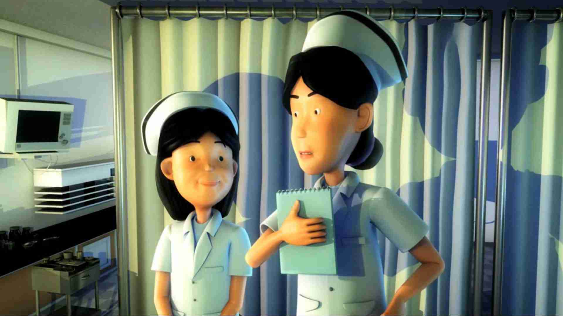 This animation consists of two parts: part 1 introduces common hazards in the work environment that can lead to dangerous working conditions, and how to prevent them. It also shows the standard “good practice” in a hospital setting to prevent these occupational accidents. The second part promotes general health topics so that HCWs can improve their general health through their work, not damage it.