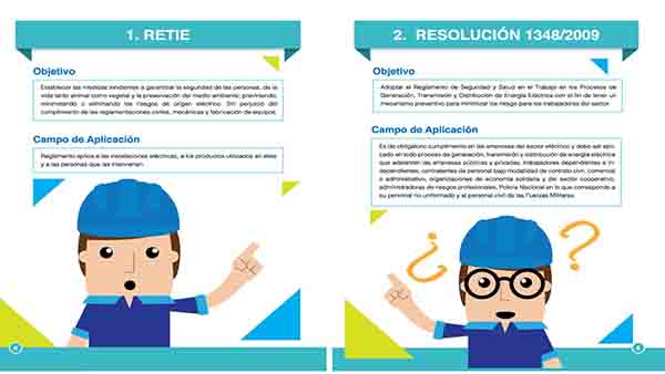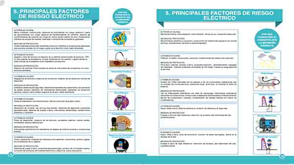 This booklet will allow the personell working in the electricity sector, in a simple and graphical way, by means of play and interactive activities, to make a brief review on the electrical risks, its main factors, and some measures of protection, adopted in the Colombian law and in the international regulations. Finally, the purpose of this interactive booklet is to raise awareness among workers and employers about electric risks, promoting this way a safer work in order to reduce the accident rate in the electricity sector.