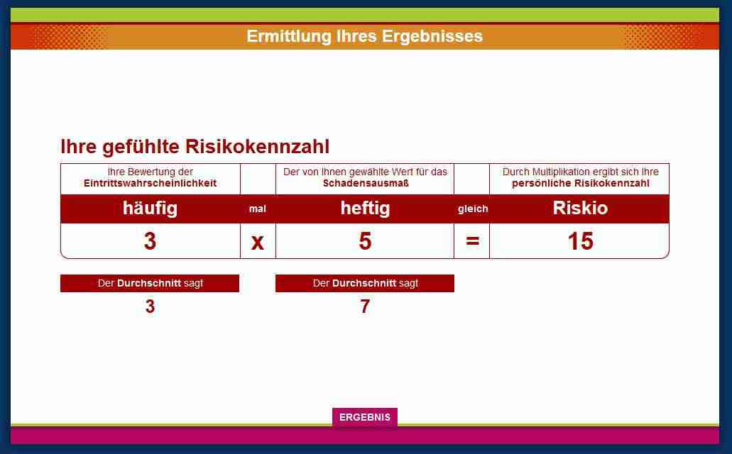 Risk assessment determines the preventive behaviour. Thus it is the goal to raise underestimaded risks to a realistic magnitude through early recognition of the risk, realistic assessment and adequate behaviour.
