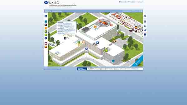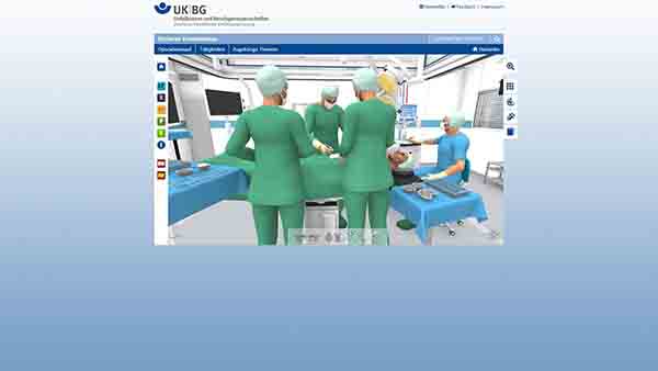 The specialist portal Safe Hospital is an interactive online compendium for occupational health and safety in hospitals, clinics and related facilities. There is a graphical interface for users in the form of a virtual hospital to select individual work areas (e.g. the operating room), individual work equipment (e.g. an anesthesia machine) or typical activities (e.g. surgical cleaning). The assigned articles provide a clear and comprehensible description of the hazards associated with the work eqquipment or the activity, as well as suitable, tested and legally compliant protective measures. Pictures, graphics and films illustrate the statements. Online tools such as the media library with selected work safety media as well as market surveys in the form of databases for important work tools (e.g. safety devices), complete the portal's offer.